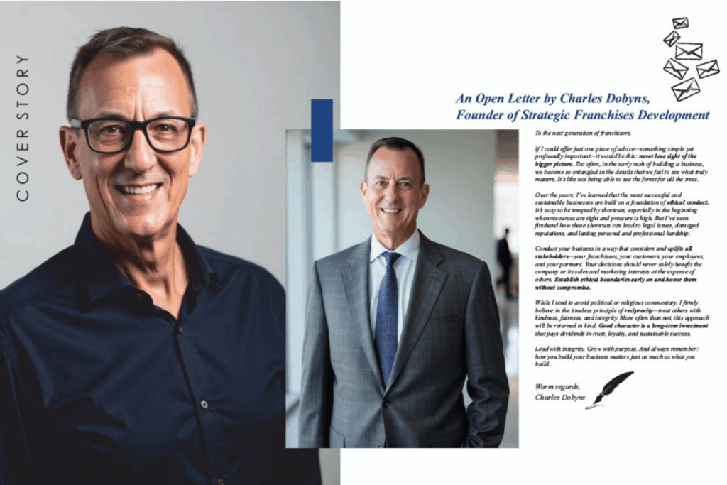 The feature emphasizes Charles’s belief that franchising isn’t just about systems—it’s about people. His “open letter to future franchisors” urges new leaders to build with integrity and empathy, reminding them that how they grow is just as important as how fast they grow.